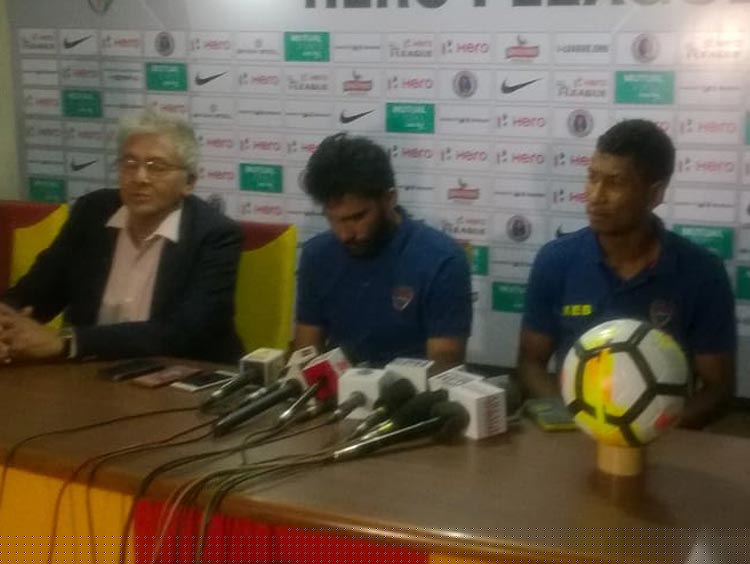 সাংবাদিক সম্মেলনে ইস্টবেঙ্গল কোচ খালিদ জামিল এবং উইলিস প্লাজা।