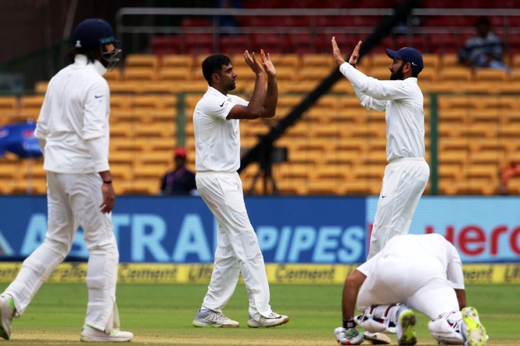 আফগানদের প্রথম ইনিংসে ধ্বস নামালেন অশ্বিন। প্রথম ওভারেই বোল্ড করলেন আফগান অধিনায়ককে। যেন বোঝালেন, তাঁকে হেলাফেলা করা একেবারেই উচিত হয়নি আফগানদের। তাৎপর্যের হল, আসগরকে ফিরিয়েই অফস্পিনার ভারতীয়দের মধ্যে চতুর্থ সর্বাধিক উইকেট শিকারী হয়ে উঠলেন। টপকে গেলেন জাহির খানকে। ৯২ টেস্টে ৩১১ উইকেট নিয়েছিলেন বাঁ-হাতি পেসার জাহির। অশ্বিনের সামনে এখন রয়েছেন অনিল কুম্বলে (১৩২ টেস্টে ৬১৯ উইকেট), কপিল দেব (১৩১ টেস্টে ৪৩৪ উইকেট) ও হরভজন সিং (১০৩ টেস্টে ৪১৭ উইকেট)। ২৫০ ও ৩০০ টেস্ট উইকেটে বিশ্বের দ্রুততম ছিলেন অশ্বিন। প্রথম ইনিংসে তিনি ২৭ রানের বিনিময়ে নিলেন চার উইকেট। ১৮ রান দিয়ে জাদেজার দখলে দুই উইকেট।