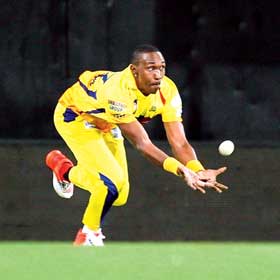 দেখতে হল, আশ্চর্য ভাবে টি-টোয়েন্টি ছেড়ে টেস্ট ক্রিকেটে পর্যবসিত কেকেআর মিডল অর্ডার! দশ-দশটা ওভার হয়ে যাচ্ছে, অথচ একটা বাউন্ডারি বার করা যাচ্ছে না! পঞ্চাশ থেকে ষাটের মধ্যে স্ট্রাইকরেট ঘোরাফেরা করছে কেকেআর ব্যাটসম্যানদের। টি-টোয়েন্টির দুঁদে ব্যাটসম্যানরা চিপকের স্লো পিচ আর সিএসকের স্লো বোলিংয়ের ফাঁসে পড়ে ছটফট করছে। ইউসুফ পাঠান পুল করতে গিয়ে আবিষ্কার করলেন, ব্যাটের কানা লেগে স্টাম্পটা ছিটকে গেল। কেকেআর সহ-অধিনায়ক সূর্যকুমার যাদব পায়ের গোড়ায় পেলেন না আর মিসটাইমড পুলটা আকাশে উঠে গেল। ডোয়েন ব্র্যাভো লং অন থেকে দৌড়ে এসে যে ক্যাচটা ঝাঁপিয়ে বাঁ হাতে নিলেন, ওটা নিঃসন্দেহে ‘মোমেন্ট অব দ্য ম্যাচ’। রায়ান টেন চেষ্টা করেছিলেন। কিন্তু ততক্ষণে অনেক দেরি হয়ে গিয়েছে।