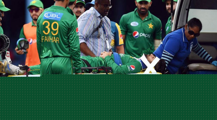 এ ভাবেই মাঠের বাইরে নিয়ে যাওয়া হয় শাহজাদকে। ছবি: সংগৃহীত।