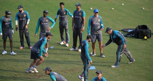 গদ্দাফি স্টেডিয়ামে অনুশীলনে পাকিস্তান ক্রিকেট দল।