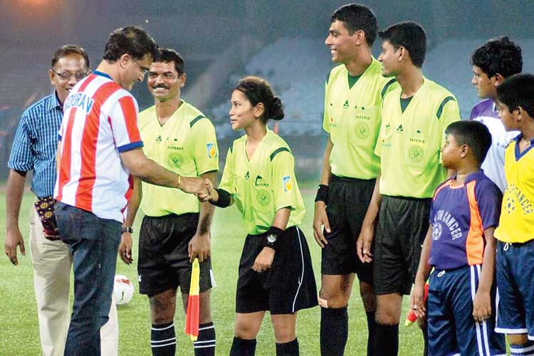 উত্তর: আমি যখন একাদশ শ্রেণিতে পড়ি, কলকাতায় এসেছিলাম কলকাতা লিগ খেলতে। খেলা শেষ হওয়ার পর আমি শিলিগুড়িতে ফিরে গিয়ে উত্তরবঙ্গ উৎসবে শিলিগুড়ি মহকুমার তরফ থেকে ফুটবল খেলি। ২০১১ সাল হবে। আমার গোলে দল কোয়ার্টার ফাইনাল, সেমি ফাইনাল এবং ফাইনাল জেতে। আমি প্লেয়ার অফ দ্যা টুর্নামেন্টের পুরস্কারও পেয়েছিলাম। সেই সময় ক্যালকাটা রেফারিজ় অ্যাসোসিয়েশনের (সিআরএ) তৎকালীন সচিব উদয়ন হালদার জানান যে, কয়েকটা মেয়ে রেফারি লাগবে। তখন আমার স্যার ওঁকে আমার কথা বলেন। স্যারই আমাকে ডেকে আমার ইচ্ছে জানতে চান। তখন আমি বাড়ি থেকে অনুমতি নিয়ে রেফারির হওয়ার জন্য এক বছরের কোর্সে ভর্তি হই।