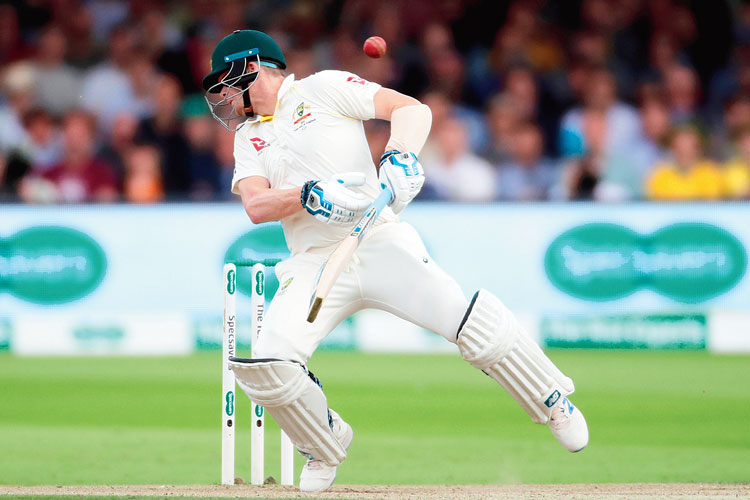 বিপন্ন: আর্চারের বাউন্সার আছড়ে পড়ল স্মিথের কানের পাশে। রয়টার্স