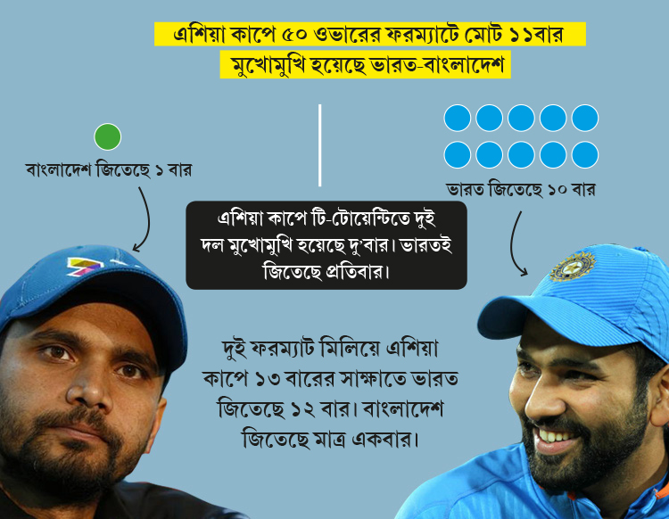 এ বারের এশিয়া কাপে বাংলাদেশ অবশ্য চোট-আঘাতের সমস্যাকে হেলায় হারিয়েছে। পাকিস্তানকে হারিয়ে দারুণ উদ্দীপ্ত দেখাচ্ছে সবুজ জার্সিধারীদের। ফাইনালে তাই রোহিত শর্মার দলের কাজ সহজ হবে না কোনও ভাবেই। তবে ধারে-ভারে-ঐতিহ্যে-পারফরম্যান্সে-পরিসংখ্যানে ভারতই ফেভারিট। আর সুপার ফোরেও তো বাংলাদেশকে হারিয়েছে টিম ইন্ডিয়া।