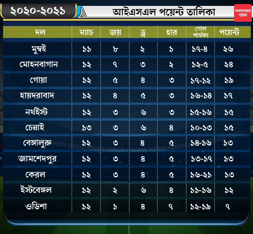 সুপার সাব ডেভিড উইলিয়ামসের গোলে জয়ে ফিরল এটিকে মোহনবাগান। ম্যাচের একেবারে শেষলগ্নে গোল পান তিনি। জাভির কর্নার থেকে ফ্লিক হেডে গোল করে যান উইলিয়ামস। প্রথম থেকেই দুদলই আক্রমণ করলেও গোলমুখ খুলতে পারছিল না কোনও দলই। ডেভিড উইলিয়ামস, জয়েস রানে ও কোমল থাটালকে নামিয়ে মাস্টার স্ট্রোক দেন আন্তনিও লোপেজ হাবাস। ১২ ম্যাচে ২৪ পয়েন্ট নিয়ে দ্বিতীয় স্থানেই থাকল এটিকে মোহনবাগান। ১১ ম্যাচে ২৬ পয়েন্ট নিয়ে শীর্ষে মুম্বই সিটি এফসি। ছ নম্বরে চেন্নাইয়ন এফসি ১৩ ম্যাচে ১৫ পয়েন্ট নিয়ে।