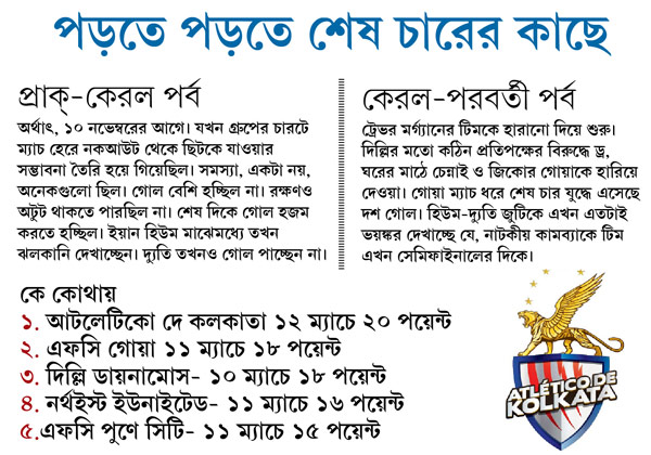 আটলেটিকো দে কলকাতা-৪ : এফসি গোয়া-০ (দ্যুতি-২, বোরহা, হিউম-পেনাল্টি)