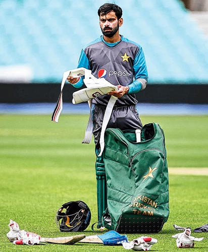 প্রস্তুতি: ফাইনালের আগে অনুশীলনে ডুবে মহম্মদ হাফিজ। ছবি: রয়টার্স।