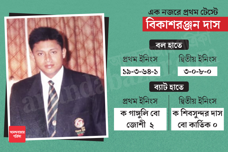 রেকর্ড বই বলছে, ‘সদাগোপান রমেশ বোল্ড রঞ্জন দাস ৫৮।’ এই পরিসংখ্যানটুকু বাদ দিলে আন্তর্জাতিক ক্রিকেটে তাঁকে চেনার, জানার আর কোনও উপায় নেই। কী করেই বা থাকবে! সেই ২০০০ সালের ১০ নভেম্বর-এর ভারত-বাংলাদেশ প্রথম টেস্ট ম্যাচটাই যে তাঁর জীবনের প্রথম এবং শেষ আন্তর্জাতিক ম্যাচ। তিনি বিকাশরঞ্জন দাস।