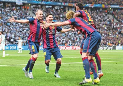 ম্যাচের প্রথম দিকে যখন জুভেন্তাস হাই প্রেস করতে শুরু করল মনে হল, যাক আজ হয়তো বার্সার বিরুদ্ধে সাহসী ফুটবলটাই দেখব। অর্থাত্ আক্রমণের বিরুদ্ধে আক্রমণ। প্রথম তিন মিনিটের পরেই সমস্ত আশা শেষ হল। জুভেন্তাসের থেকে সেই যে বলটা পেল বার্সা আর ফেরত দিতেই চাইল না। সেই ছোট ছোট পাস। মেসি-নেইমার-সুয়ারেজদের অনবরত জায়গা পাল্টানো। বার্সার বিরুদ্ধে যা সব বিপক্ষ করে থাকে, সেটাই করল জুভেন্তাস। সবাই মিলে পিছনে গিয়ে বসে থাকা। সুযোগ পেলে প্রতি আক্রমণ। ইভান রাকিটিচের গোলটা দেখে মনে হল বার্সা ফুটবলকে কত সহজ করে ফেলেছে। প্রথম গোলটা ভাবুন। নেইমার পাস দিল ইনিয়েস্তাকে। ইনিয়েস্তা থেকে রাকিটিচ। তার পরে বলটা সোজা জালে। দেখে মনে হল অনুশীলনে করা গোল। তিকিতাকার সঙ্গে ডিরেক্ট ফুটবলটাকে ভাল করেই মিশিয়ে দিয়েছেন এনরিকে।