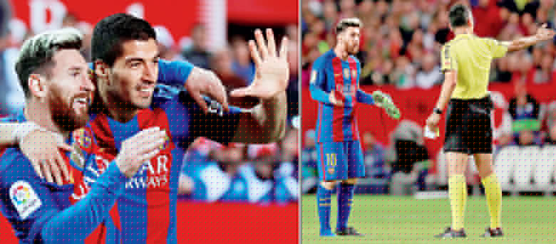 পোড়খাওয়া কোচ সাম্পাওলির দল অবশ্য মাঠে বার্সার উৎসবের রঙ ফিকে করে দিতেই পারত। কারণ প্রথমার্ধের গোড়ার দিকে ভিতোলো এগিয়ে দিয়েছিলেন সেভিয়াকে। কিন্তু সেভিয়া কোচের আতঙ্কই সত্যি প্রমাণ করে দেন মেসি। বিরতির ঠিক আগে নেইমারের পাস থেকে বিপক্ষ জালে বল ঠেলে। যে গোলের সঙ্গে সঙ্গেই সরকারি আর ফ্রেন্ডলি ম্যাচ মিলিয়ে ৫০০ গোলের মাইলফলক ছুঁয়ে ফেলেন বার্সেলোনার রাজপুত্র। ক্লাবের হয়ে ৫৯২ ম্যাচ খেলে। তবে নজিরের পাশাপাশি বিতর্কিত হলুদ কার্ডও দেখেন আর্জেন্তিনীয় মহাতারকা। দ্বিতীয়ার্ধে বিপক্ষের ট্যাকলে মেসির বুট খুলে যায়। কিন্তু ঘটনার পরে রেফারির মনে হয়, বুট পায়ে গলাতে মেসি সময় নষ্ট করছেন। হলুদ কার্ড দেখান।