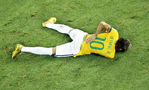 ম্যাচ চলাকালীন বল দখলের লড়াইয়ে নেইমারের পিঠে গিয়ে মারেন রোডাস। ঠিক সেই জায়গায় যেখানে চোট লাগার কারণে বিশ্বকাপ স্বপ্ন শেষ হয়ে গিয়েছিল ‘ওয়ান্ডার কিডের’। পিঠ ধরে প্রায় চার-পাঁচ মিনিট মাঠে যন্ত্রণায় ছটফট করেন। কে জানে, হয়তো তাঁর মনের মধ্যে আবার সেই দুঃস্বপ্নের স্মৃতি ভেসে উঠেছিল কি না। যদিও ম্যাচের শুরুতে নিজের মেজাজে শুরু করেন নেইমার। মেসির সঙ্গে যুগলবন্দিতে বার্সাকে ১-০ এগিয়ে দেন ব্রাজিলীয় মহাতারকা।