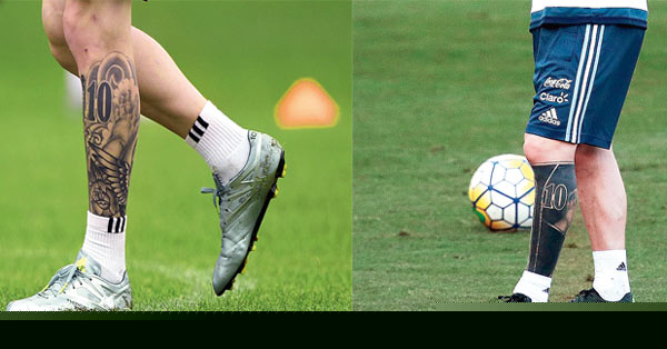 বাঁ-পায়ের ট্যাটু বদলে নতুন ট্যাটুতে দেখা গেল লিওনেল মেসিকে। মেসির এর আগে যে ট্যাটু ছিল তাতে একটি তলোয়ারের ছবি ছিল। ফুলের প্যাটার্নে একটি হাতের প্রিন্টও দেখা যেত। সঙ্গে তাঁর বড় ছেলের নাম থিয়াগো আর তাঁর জার্সির নম্বর ১০। নতুন ট্যাটুতে প্রায় গোটাটাই কালো কালিতে ভরা। তলোয়ারটা দেখা যাচ্ছে না। তবে বাচ্চার হাতটা দেখা যাচ্ছে। সঙ্গে তাঁর জার্সি নম্বর। হঠাৎ ট্যাটু কেন বদলালেন আর্জেন্তিনার রাজপুত্র? কারণটা পরিষ্কার নয়, তবে মনে করা হচ্ছে তাঁর ছোট ছেলে মাতেওর জন্মের পর ট্যাটুতে তলোয়ারের ছবি রাখাটা দুই বাচ্চার বাবা হিসেবে ভাল বি়জ্ঞাপন নয় বলে মনে হয়েছে মেসির। তাই এই নতুন ট্যাটু।