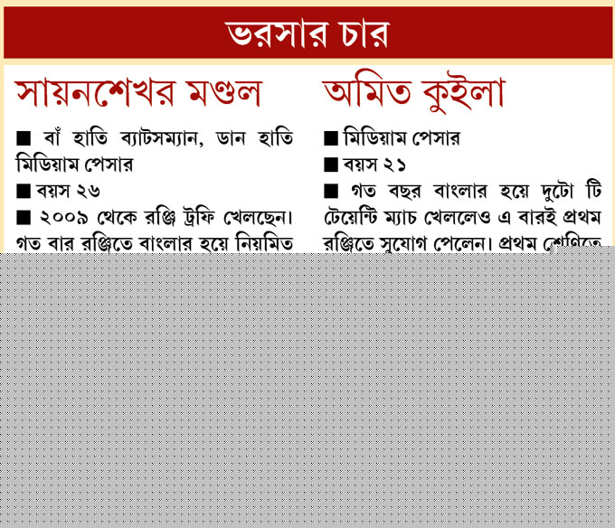 দুর্গাপুরের সায়নশেখর মণ্ডল, মেদিনীপুরের কুইলা, অগ্নিভ পান, কালীঘাটের অয়ন— জেলা ও শহর থেকে উঠে আসা নতুন ছেলেরা যে ক্রমশ পরিণত হয়ে উঠছেন, বাংলার এই মরসুমের প্রথম কয়েকটা ম্যাচই তার প্রমাণ। বাংলার এই নতুন প্রজন্মের দলের প্রতি দায়বদ্ধতা দেখে খুবই আশাবাদী মনোজ। বলছেন, ‘‘এ বার মরসুমের শুরু থেকেই এরা প্রত্যেকেই এত সিরিয়াস যে, দেখে ভাল লাগছে। বাংলার হয়ে রঞ্জি ট্রফি খেলাটা যে বড় ব্যাপার, তার জন্য যে নিজেদের সেরাটা দেওয়া উচিত, সেটাই উপলব্ধি করতে পারছে এরা। আশা করি, এ বার আরও বেশি ম্যাচ জিতে নক আউটে যেতে পারব।’’