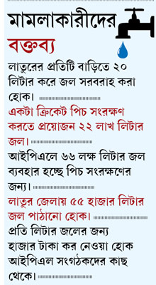 প্রশ্নের কারণ, মহারাষ্ট্রের সেই খরা পরিস্থিতি আর তীব্র জল কষ্ট। আর সেই সময়ই কি না আইপিএলের জন্য মুম্বই, পুণে, নাগপুরে উইকেট সংরক্ষণের জন্য ৬০ লক্ষ লিটার জলের অপচয়! যার জেরে মুম্বই হাইকোর্টে ওঠা জনস্বার্থ মামলা। এ দিন সেই মামলার শুনানির সময়ই আদালত তীব্র ভর্ৎসনা করে সরকার এবং আইপিএল সংগঠকদের। যার জেরেই মুম্বইয়ে আইপিএল উদ্বোধনের আকাশে কালো মেঘ!