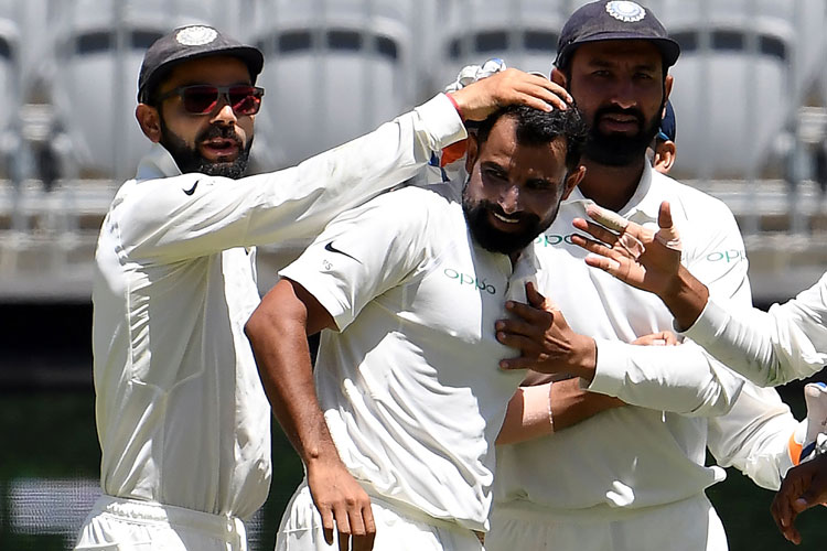 ১৭৫ রান লিডের পুঁজি নিয়ে এ দিন মাঠে নেমেছিলেন অজি ব্যাটসম্যানেরা। সেই লিড বাড়তে বাড়তে ২৮৬ রান হয়েছে। এখনও দেড় দিনেরও বেশি খেলা বাকি। এরই মধ্যে পার্থের পিচের অসমান বাউন্স আরও বেহিসেবি আচরণ করতে শুরু করেছে। কখনও পিচে পড়ে ব্যাটসম্যানের মাথা ছাড়িয়ে বেরিয়ে যাচ্ছে, তো কখনও ক্রিজের ফাটলে পড়ার পর একেবারে নিচু হয়ে এগিয়ে যাচ্ছে। শামির এ রকম একটা বলেই আউট হলেন কামিন্স। বল পিচ করার পর তাঁর হাঁটু পর্যন্তও ওঠেনি। ব্যাটের ডিফেন্স গলে তা নাড়িয়ে দেয় তাঁর স্টাম্পস। আবার শামি যে বলে উসমান খোয়াজাকে আউট করলেন, তাতে তাঁর বেশি কিছু করার সুযোগ ছিল না। বলের বাউন্সের সঙ্গে সঙ্গে খোয়াজাকে নাচিয়ে তাঁর গ্লাভস ছুঁয়ে তা ধরা পড়ল ঋষভ পন্থের তালুতে।