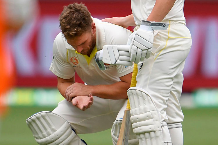 শামির বলের বিষাক্ত ছোবল লাগল ফিঞ্চের তর্জনীতে। ছবি: এএফপি।