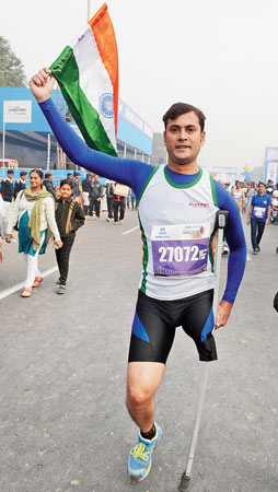 রবিবাসরীয় ইভেন্টের জন্যই শহরের নামী তবলাবাদক বিক্রম ঘোষের তৈরি থিম সং ‘রান... রান.. দৌড়ান’ সুরের মুর্ছনার ভেতর যখন তিয়াত্তর জন প্রতিবন্ধীর রেস স্টার্টিং ব্লক থেকে এগোল, বেকার-সৌরভের মতোই নাগাড়ে হাততালি দিয়ে যাচ্ছিলেন ঋতুপর্ণা সেনগুপ্ত, ক্রীড়ামন্ত্রী অরূপ বিশ্বাস, লক্ষ্মীরতন শুক্লরা। যে রেসে হুইলচেয়ার, ক্র্যাচ থাকবে। ছিলও। কিন্তু হাঁটুর নীচ থেকে একটা পা না থাকা এক তরুণ যখন হাতে জাতীয় পতাকা নিয়ে রেড রোড ধরে ভোরের স্নিগ্ধ রোদে ক্র্যাচে ভর দিয়ে এগিয়ে যাচ্ছিলেন— তার চেয়ে বড় জীবন-দৌড় আর কী পারত!