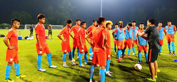 কলম্বিয়া ম্যাচের আগেে অনুশীলনে ভারতীয় দল। ছবি: এআইএফএফ।