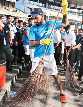 যেন বুঝিয়ে দেওয়া ক্রিকেট বোর্ড আর সরকার আলাদা নয়। রবিবার ইডেনে বিরাট কোহালিদের ‘স্বচ্ছ ভারত অভিযান’।