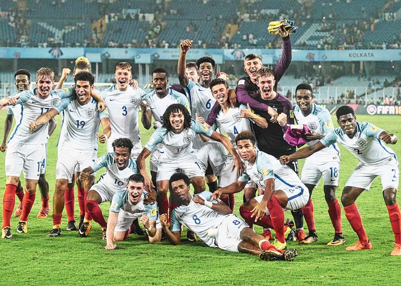 অনূর্ধ্ব ১৭ বিশ্বকাপ ফাইনালে উঠে ইংল্যান্ড দল। বুধবার যুবভারতীতে।