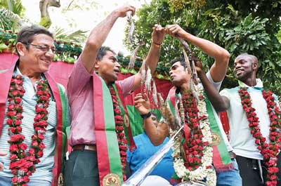 সঞ্জয়দের বাস যত এগোচ্ছিল, ততই ভিড় বাড়ছিল পাল্লা দিয়ে। যেন হ্যামলিনের বাঁশিওয়ালার মতোই বাগানের টিম বাস বিমানবন্দর থেকে পার্ক সার্কাস পর্যন্ত এ দিন সব সবুজ-মেরুন সমর্থককে টেনে বার করে এনেছিল রাস্তায়। বাড়ি, অফিস, দোকান, থেকে বেরিয়ে যাঁরা সেলফি তুললেন আনন্দ-মুহূর্তের। নিলেন প্রিয় তারকাদের সাক্ষর। সমর্থকদের সঙ্গে খুনসুটি করে হাতের বোতলের জলে তাঁদের স্নান করালেন সনি-বলবন্তরা।