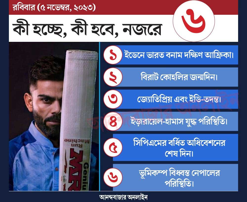 আজ ইডেনে ভারত বনাম দক্ষিণ আফ্রিকা। দু’দল যে ফর্মে রয়েছে তাতে এই ম্যাচকেই অনেকে বলছেন এ বারের বিশ্বকাপের ফাইনাল। পয়েন্ট তালিকায় শীর্ষে থাকার লড়াই রোহিত শর্মা ও তেম্বা বাভুমার দলের। রবিবার কী হবে ইডেনে? এই ম্যাচ দুপুর ২টো থেকে। খেলা দেখা যাবে স্টার স্পোর্টসে।