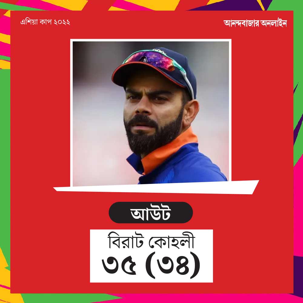 মহম্মদ নওয়াজ তুলে নিলেন বিরাটকে। ৩৪ বলে ৩৫ রান করে আউট কোহলী।
