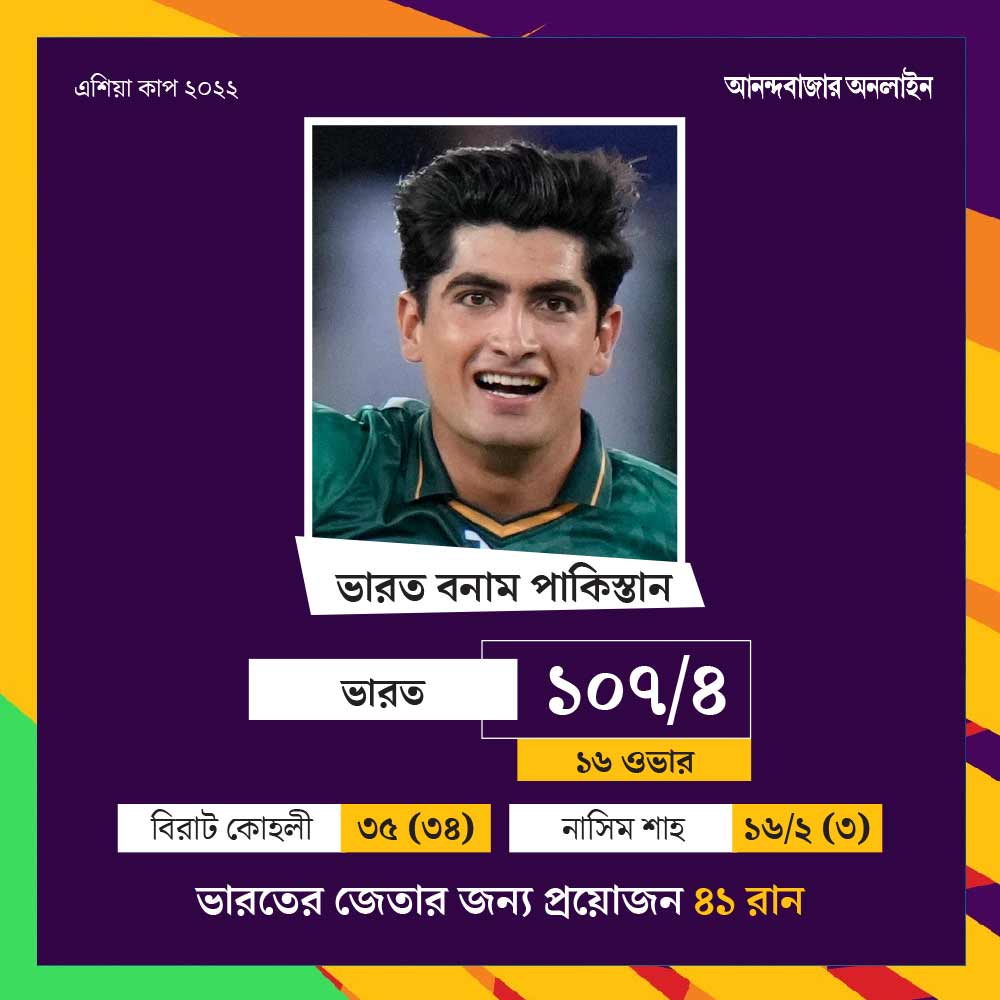 বাকি আর ৪১ রান। ১৬ ওভারে ভারত তুলেছে ১০৭ রান। ক্রিজে জাডেজা এবং হার্দিক।