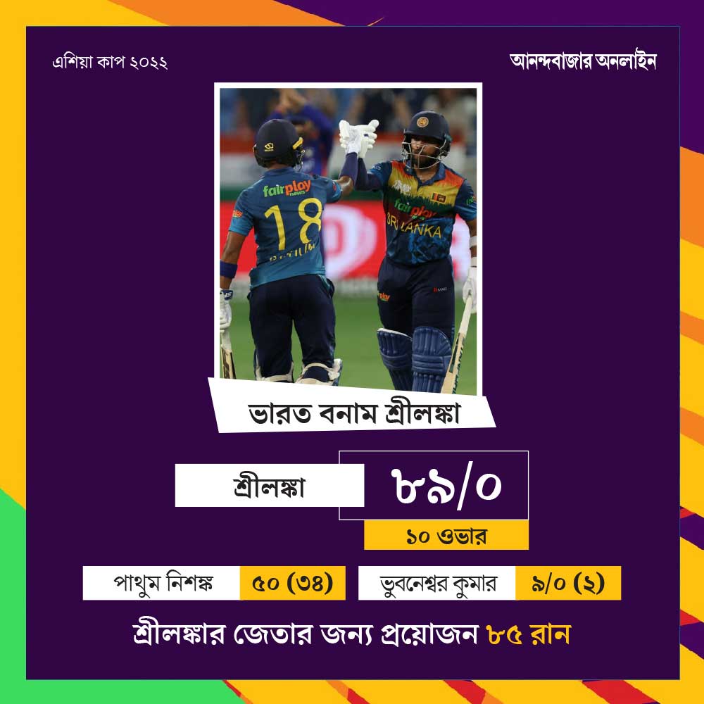 ১০ ওভার শেষ। নিশঙ্ক (৫০) এবং মেন্ডিস (৩৯) ব্যাট করছেন।