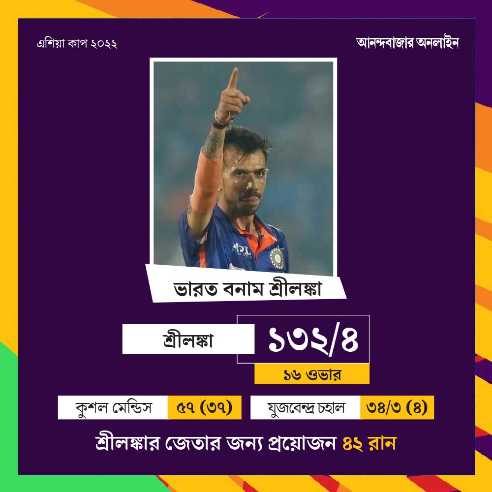 ১৬ ওভার শেষ। রাজাপক্ষ (১৬) এবং শনাকা (৪) ব্যাট করছেন।