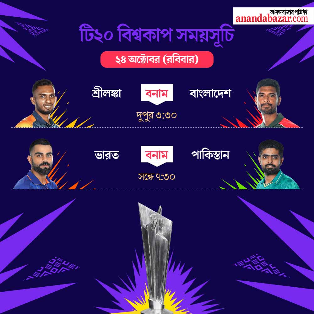 রবিবার প্রথম ম্যাচ দুপুর সাড়ে তিনটে থেকে। শ্রীলঙ্কা এবং বাংলাদেশ খেলতে নামবে সেই ম্যাচে। যোগ্যতা অর্জন পর্ব থেকে উঠে এসেছে এই দুই দল। টেস্ট খেলিয়ে দেশ হয়েও টি২০ ক্রিকেটে খেলতে হয়েছে যোগ্যতা অর্জন পর্ব। এমন অবস্থায় দুই দলের সামনেই নিজেদের প্রমাণ করার লড়াই। শারজার মন্থর উইকেটে এশিয়ার দুই দলের স্পিন যুদ্ধ দেখার জন্য মুখিয়ে থাকবেন দর্শকরা।