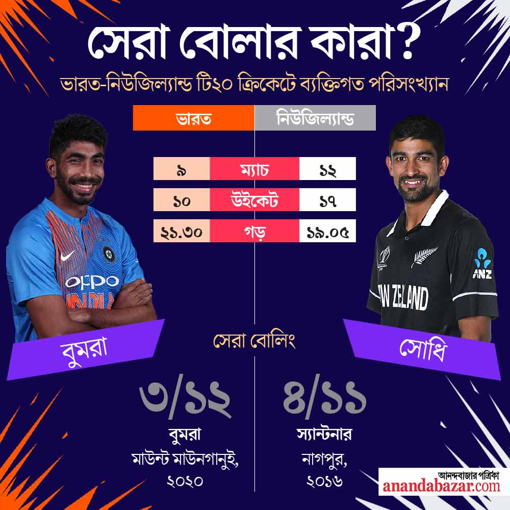 এখনও পর্যন্ত টি-টোয়েন্টি ক্রিকেটে ভারত ও নিউজিল্যান্ড যে ১৭টি ম্যাচে মুখোমুখি হয়েছে, তাতে দুই দলের ব্যাটার ও বোলারদের মধ্যে এগিয়ে রয়েছেন রোহিত শর্মা, কলিন মুনরো, যশপ্রীত বুমরা, ইশ সোধি।