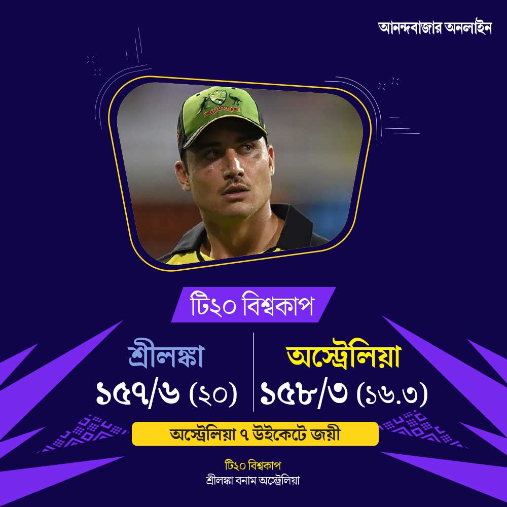 দেশের মাটিতে টি-টোয়েন্টি বিশ্বকাপে প্রথম জয় পেল অস্ট্রেলিয়া। এর আগে প্রথম ম্যাচে নিউজ়িল্যান্ডের কাছে উড়ে গিয়েছিলেন অ্যারন ফিঞ্চরা। কিন্তু দ্বিতীয় ম্যাচে জয়ে ফিরলেন তাঁরা। পার্থে শ্রীলঙ্কাকে ৭ উইকেটে হারাল অস্ট্রেলিয়া। প্রথমে ব্যাট করে ১৫৭ রান করে শ্রীলঙ্কা। সেই রান তাড়া করে ম্যাচ জিতে যায় অস্ট্রেলিয়া। মার্কাস স্টোইনিস ঝড়ে উড়ে যায় এশিয়া চ্যাম্পিয়নরা।