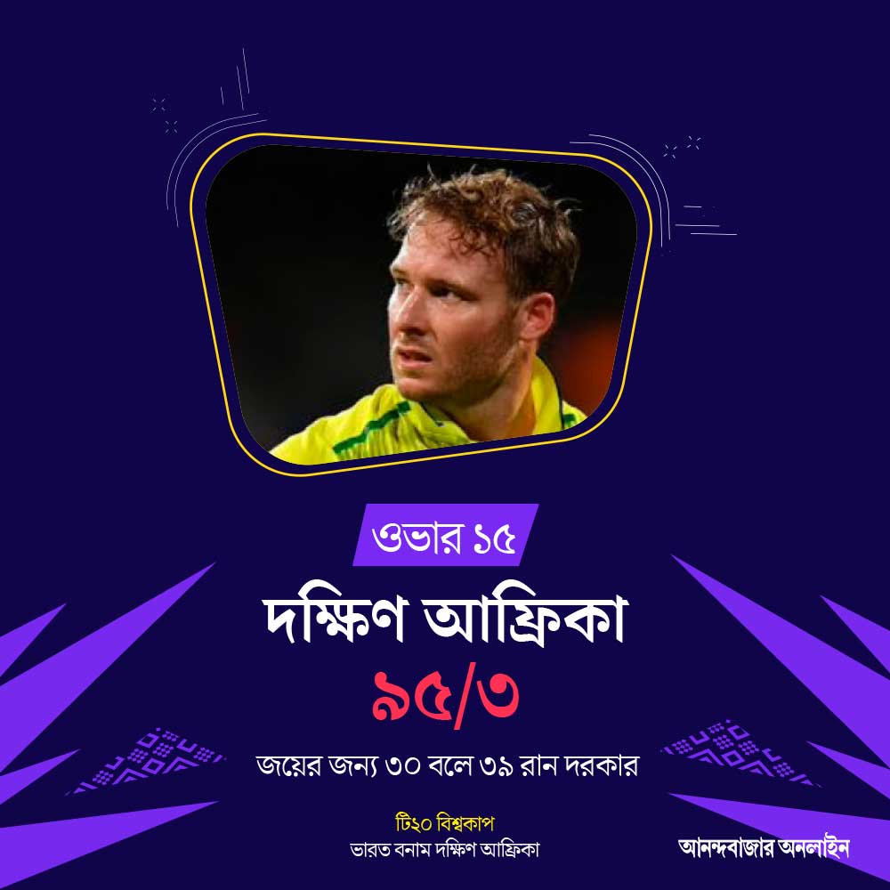 সূর্যকুমার ১৭ ও কার্তিক ১ রান করে খেলছেন।