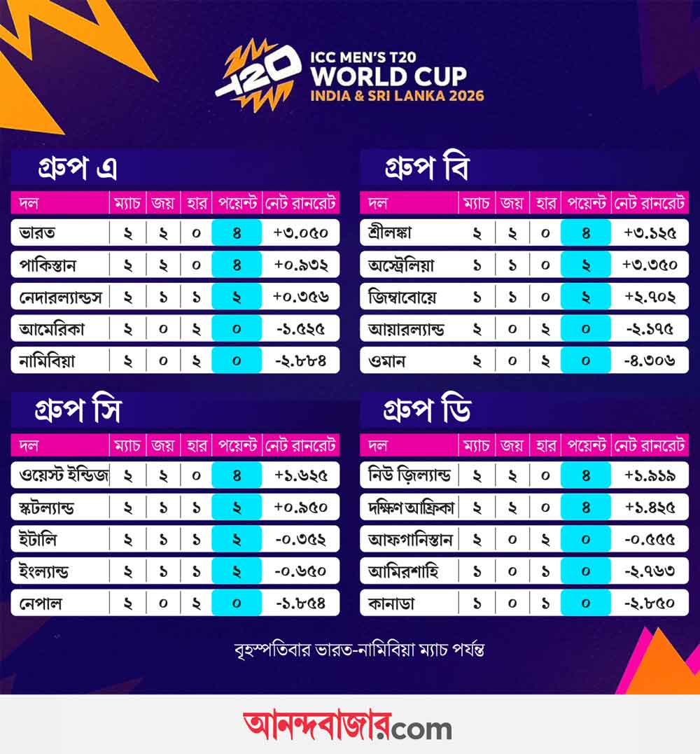 বৃহস্পতিবার ভারত-নামিবিয়া ম্যাচের পর টি-টোয়েন্টি বিশ্বকাপের অন্যতম ধারাভাষ্যকার পার্থিব পাকিস্তানের স্পিন আক্রমণ নিয়ে প্রশ্ন করেন বরুণকে। জবাবে ভারতীয় দলের স্পিনার হাসতে হাসতে বলেছেন, ‘‘বিশ্বকাপে সব ম্যাচই খুব গুরুত্বপূর্ণ। এ নিয়ে সন্দেহ নেই। আমরা পরের ম্যাচটা খেলার জন্য মুখিয়ে রয়েছি। সকলেই খুব উত্তেজিত। চ্যালেঞ্জ নিতে আমরা তৈরি।’’ এর পরেই বরুণ বলেছেন, ‘‘আমরা কিন্তু স্পিনের বিরুদ্ধে বেশ শক্তিশালী। আমাদের স্পিন আক্রমণও বেশ ভাল। আমার তো মনে হয় ওদের চেয়ে আমরা একটু হলেও এগিয়ে রয়েছি। ওরা একই পরিবেশে দুটো ম্যাচ খেলেছে। পরিবেশের সঙ্গে মানিয়ে নিয়েছে ভাল ভাবে। এই সুবিধাটা ওরা পাবে। তবে আমার বিশ্বাস, দল হিসাবে আমরা ওদের চেয়ে ভাল। আমাদের প্রস্তুতিও ভাল হয়েছে।’’