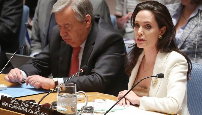 ২০১৫ সালে রাষ্ট্রপুঞ্জে সিরীয় সমস্যা নিয়ে ভাষণরত জোলি। ছবি: সংগৃহীত।