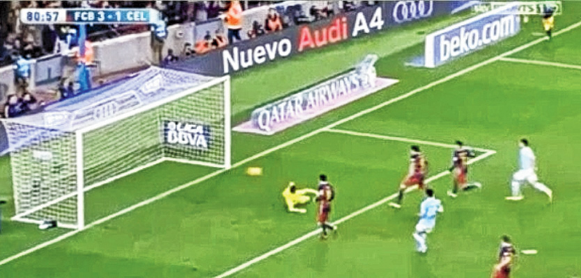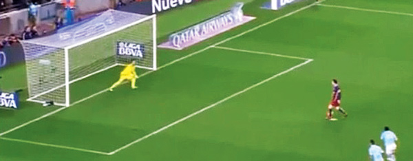 পেনাল্টি নিতে এগোচ্ছেন মেসি। সবাইকে অবাক করে ডান দিকে বল বাড়ালেন। সেল্টার ফুটবলাররা কিছু বুঝে ওঠার আগেই সুয়ারেজ বল জড়িয়ে দিলেন জালে।