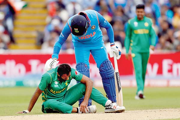 ২০১১ মোহালি, ২০১৩ বার্মিংহাম, ২০১৫ অ্যাডিলেডে যা দেখা গিয়েছে, ২০১৭ বার্মিংহামেও তাই দেখা গেল। ভাংড়ার তালে নাচতে নাচতে কোহালি, ধোনিদের নামে জয়ধ্বনি দিতে দিতে ফিরছেন ভারতীয় ক্রিকেটভক্তরা। হারের বিষণ্ণতা গ্রাস করেছে পাকিস্তানকে। উল্টে তাদের সেরা অস্ত্র মহম্মদ আমির এবং ওয়াহাব রিয়াজ পুরো দশ ওভারের কোটা সম্পূর্ণ করতে না পেরে বেরিয়ে গেলেন চোট পেয়ে। আমির যদি দ্রুত ফিরতে না পারেন, গোটা টুর্নামেন্টেই পাকিস্তানের বোলিং জন্ডিসে আক্রান্ত হতে পারে।