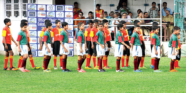 সবুজ-মেরুন ফুটবলাররা ছিলেন না, ছিল খুদে ম্যাসকটরা। —নিজস্ব চিত্র।