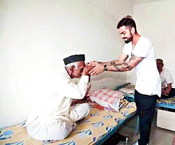 ক্রিকেট থেকে সময় বার করে পুণের এক বৃদ্ধাশ্রমে বিরাট কোহালি। ছবি- এএফপি, ফেসবুক