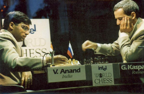 বিশ্বনাথন আনন্দের সঙ্গে খেলার একটি মুহূর্তে কাসপারভ। —ফাইল চিত্র।