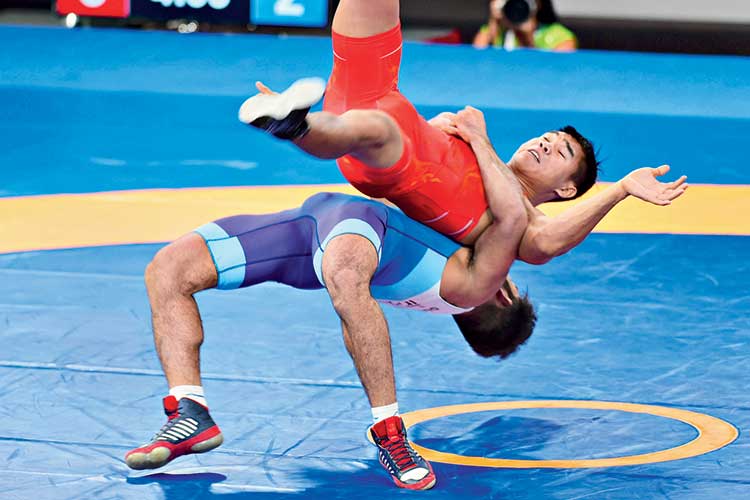 প্রয়াস: ভারতের গুরপ্রীত সিংহ কুস্তিতে ৭৭ কেজি গ্রেকো রোমান বিভাগে লড়ছেন। যদিও হারেন তিনি। ছবি: পিটিআই।