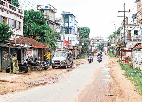 আগরতলায় বাড়ির সামনের এই রাস্তায় বিএমডব্লিউ চালানো নিয়েই বিব্রত দীপা কর্মকার।-বাপি রায়চৌধুরী