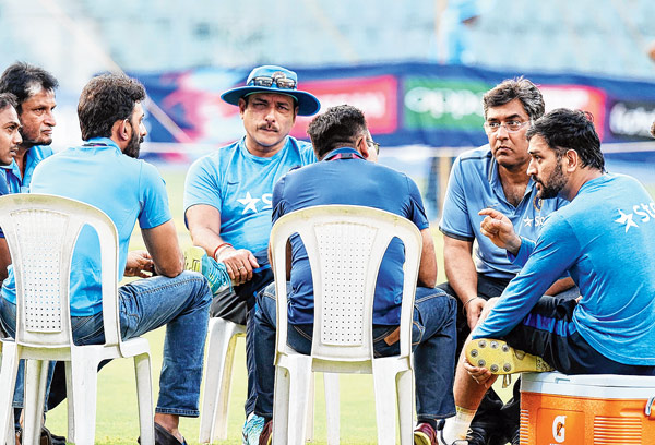 টিম ডিরেক্টর রবি শাস্ত্রী আর ব্যাটিং কোচ সঞ্জয় বাঙ্গার, দু’জনেরই এখানে গুরুত্বপূর্ণ ভূমিকা পালন করা উচিত। ওঁরা দু’জনেই এমন সব টিমে খেলেছেন যেখানে তারকার ছড়াছড়ি ছিল। আর তাই ওঁরা নিশ্চয়ই জানেন, সব কিছু যখন ওয়ান ম্যান শো-এ পরিণত হয় তখন কম প্রতিভাবানদের মানসিক অবস্থা কেমন দাঁড়ায়। একটা ব্যাপার খুব জরুরি। অত্যধিক প্রশ্রয়ী বাবার মতো সাধারণ সন্তানকে খুব বেশি বকাঝকা করে তার সামনেই অন্য সন্তানটির বাড়াবাড়ি রকম প্রশংসা করা— এটা যেন একদম না হয়। টিমের বাকি সদস্যদের মনে করাতে হবে যে, ওরাও সব কিছুর অংশ। আমি কী বলছি, সঞ্জয়ের সেটা বোঝা উচিত। ও বহু বছর রেলওয়েজ রঞ্জি টিমের সদস্য ছিল। যে টিমে এক মুরলী কার্তিককে বাদ দিলে কোনও দিনই বিশাল তারকা খেলেনি।