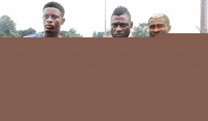 মোহনবাগানের প্রধান ভরসা (বাঁ দিক থেকে) কিংগসলে, কামো, ক্রোমা। ছবি: বিশ্বরূপ বসাক।