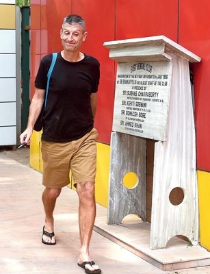 দুপুরে ইস্টবেঙ্গল ক্লাব তাঁবুতে বিদায়ী কোচ মর্গ্যান।
