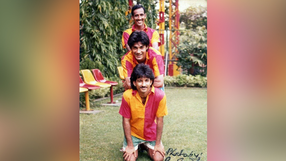 ইস্টবেঙ্গল ক্লাব লনে রুমি, মুন্না ও আসলাম।