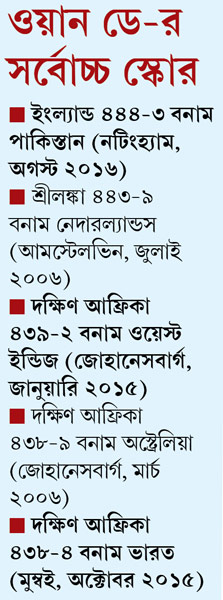 নেদারল্যান্ডসের বিরুদ্ধে শ্রীলঙ্কার ৪৪৩-৯ এত দিন সর্বোচ্চ ওয়ান ডে স্কোর ছিল। এ দিন পাকিস্তানের বিরুদ্ধে নটিংহ্যামে তৃতীয় ওয়ান ডে-তে যা ভেঙে দিল ইংল্যান্ড। পঞ্চাশ ওভারে ৪৪৪-৩ তুলে।