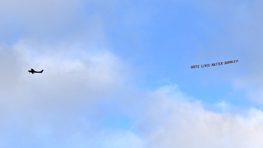 বিতর্ক: ম্যাচের মধ্যেই উড়ছে ব্যানার ‘হোয়াইট লাইভ্স ম্যাটার’। গেটি ইমেজেস