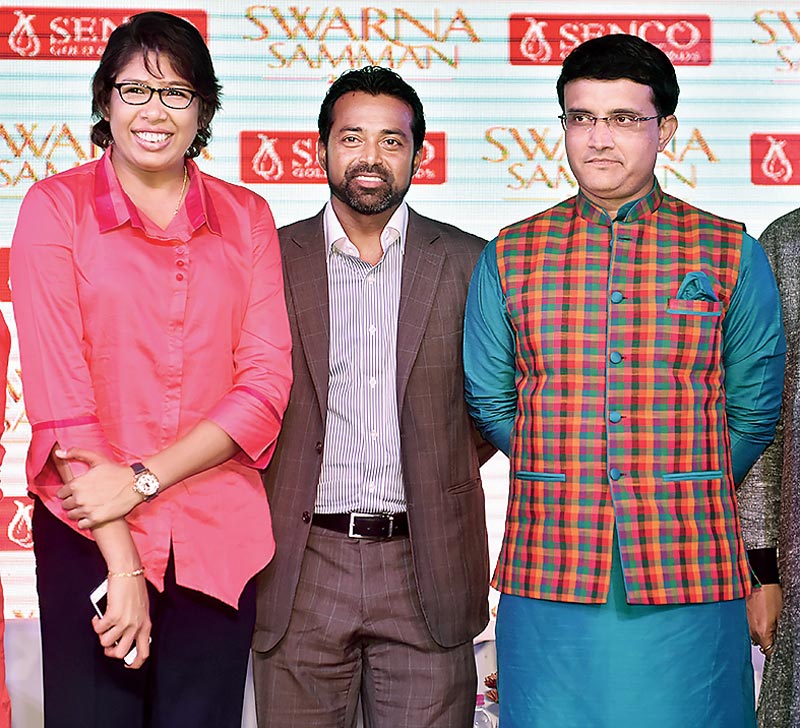 ত্রয়ী: কলকাতার তিন গর্ব। ঝুলন, লিয়েন্ডার, সৌরভ। নিজস্ব চিত্র